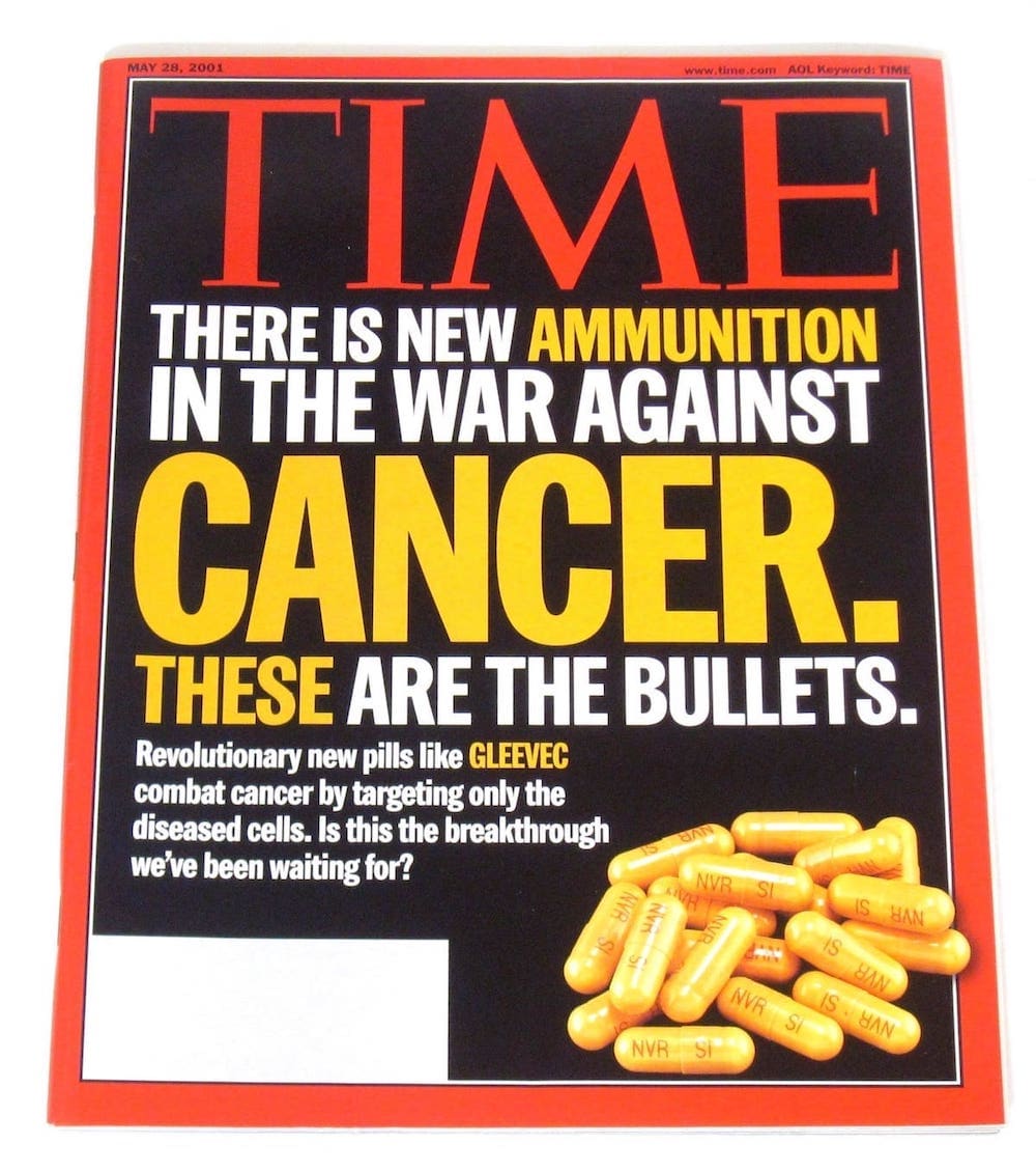 As it turns out, the first clinical trial of Imatinib took place in 1998 and the drug received FDA (US) approval in May 2001, becoming available in other parts of the world soon after, moving onto the WHO's list of essential medicines.